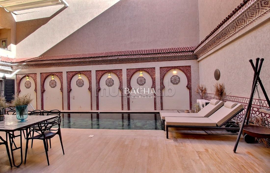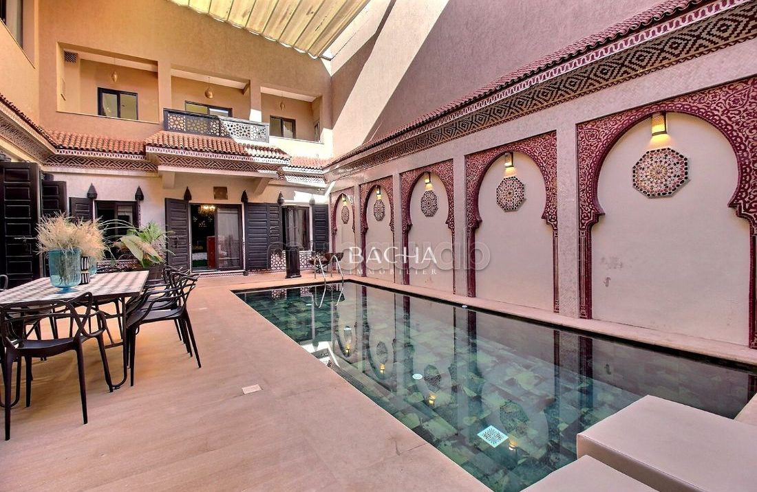 À quelques minutes du centre-ville de Marrakech, découvrez cette propriété traditionnelle de type Riad.